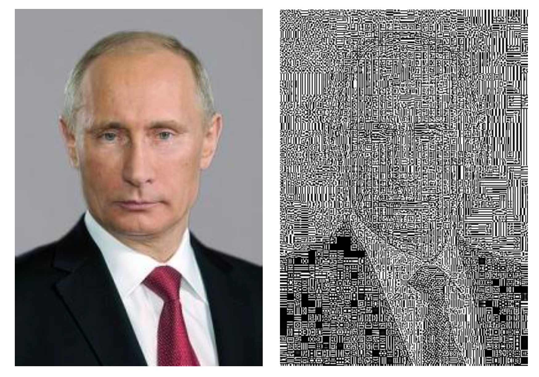 Despite the fact that many articles about Ruff’s "jpeg" series describe it as a study of image deformation via the Internet, it is actually aimed at revealing the visual information we are mostly surrounded with and showing through what kind of images we perceive the world outside our direct vision and experience. In order to show this more clearly, let us compare Ruff’s photographs with other visual objects that reveal exactly the work of the Internet in the degeneration of images. I’m talking about the public page in the Russian social network VKontakte called "Putin for every day" (https://vk.com/putineveryday). Although it is not proclaimed as art, this project has creative potential. The administrator of this page has posted the same photo of the President of Russia every day since 2012. He/she saves this image on the computer and posts it on the Internet again, so it gradually loses quality. This happens not only due to the properties of its format but also due to the work of social network algorithms that optimize images to reproduce them. This media operates with the same digital structure that the photograph represents, but also makes its own changes to it. That is, it leaves its mark on the original picture, distorting it.