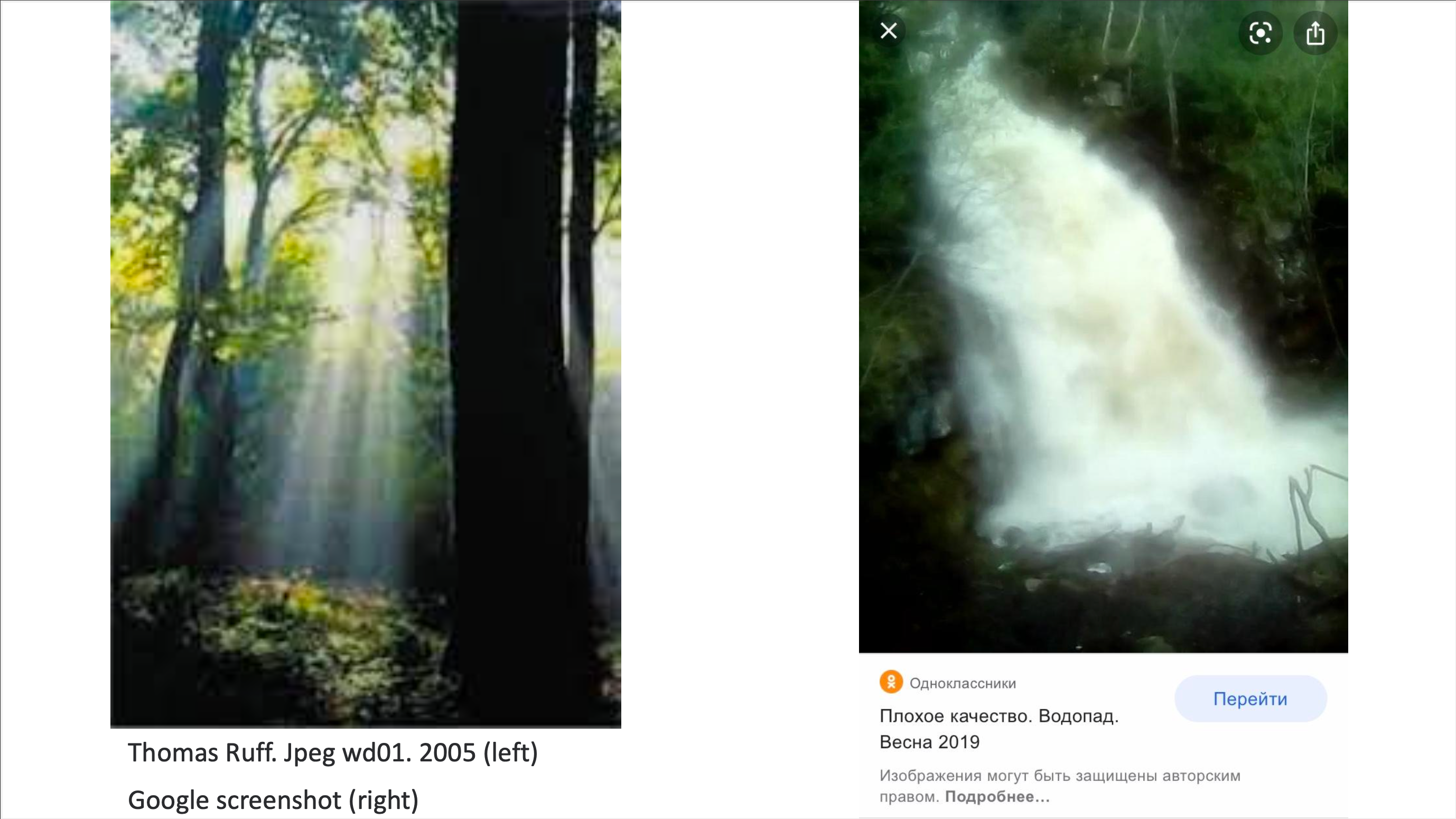 If someone takes an image from the Internet, it is difficult to perceive it as art, even as a ready-made. Perhaps it is so because there is no re-contextualization which is necessary for the ready-made (as a part of the institutional perception of art). Even if this image is placed in the space of the gallery, it will sooner or later get onto the Internet in modern realities and most people will perceive it through the web (because the gallery cannot achieve such a mass audience as the Internet can). That is, the image will make a loop, returning to the same place in the same form in which it was taken. Therefore, in order to be perceived in the field of creative activity, the Internet image used by an artist needs artistic or conceptual processing._