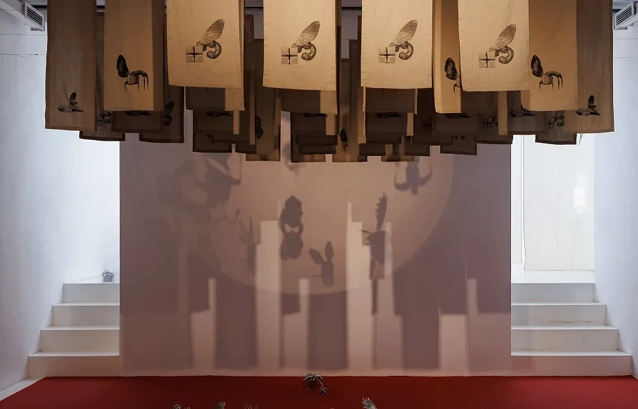 В проекте «PARANORMAL PHENOMENA» контраст между явным манифестом образа, его повторением на полотнищах флагов и образом живых существ запускает в нас функции сканирования пространства, распределения ролей в нем.