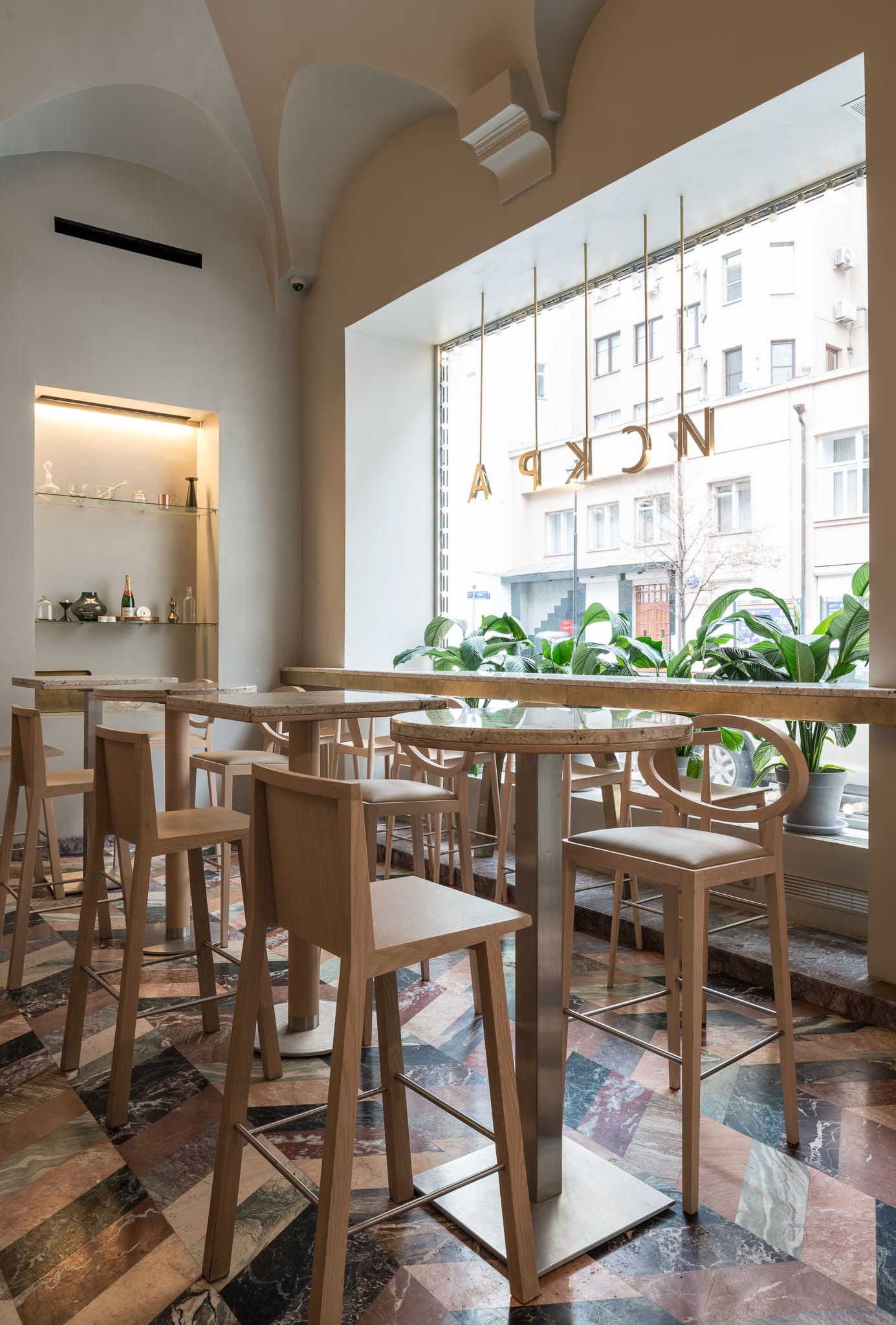 Every work of art contains conflict, "complexities and contradictions." Simplification, just like meaningless decoration, deprives a building of its meaning; contradictions and complexities are returning. Today, those who often reference Venturi’s ideas aim to reintroduce meaning into their activities by using his lens. An architectural work doesn’t only serve utilitarian purposes, and if it raises important questions and offers intriguing answers, the author’s resolve is justified. In the 1990s and 2000s, the search for "national identity" in Russian and, especially, Moscow architecture led us to various experiments that flirted with neo-Russian style but were more about representing an elementary scenario themed around "Muscovite" rather than providing any real understanding of the city. Today, they have almost literally taken a different path — starting from the Kremlin towers, they moved underground, to the metro. The marble of the stations, liberated from ideologically-approved imperial forms, became the foundation for creating the image of a "distinctly Moscow" bar.