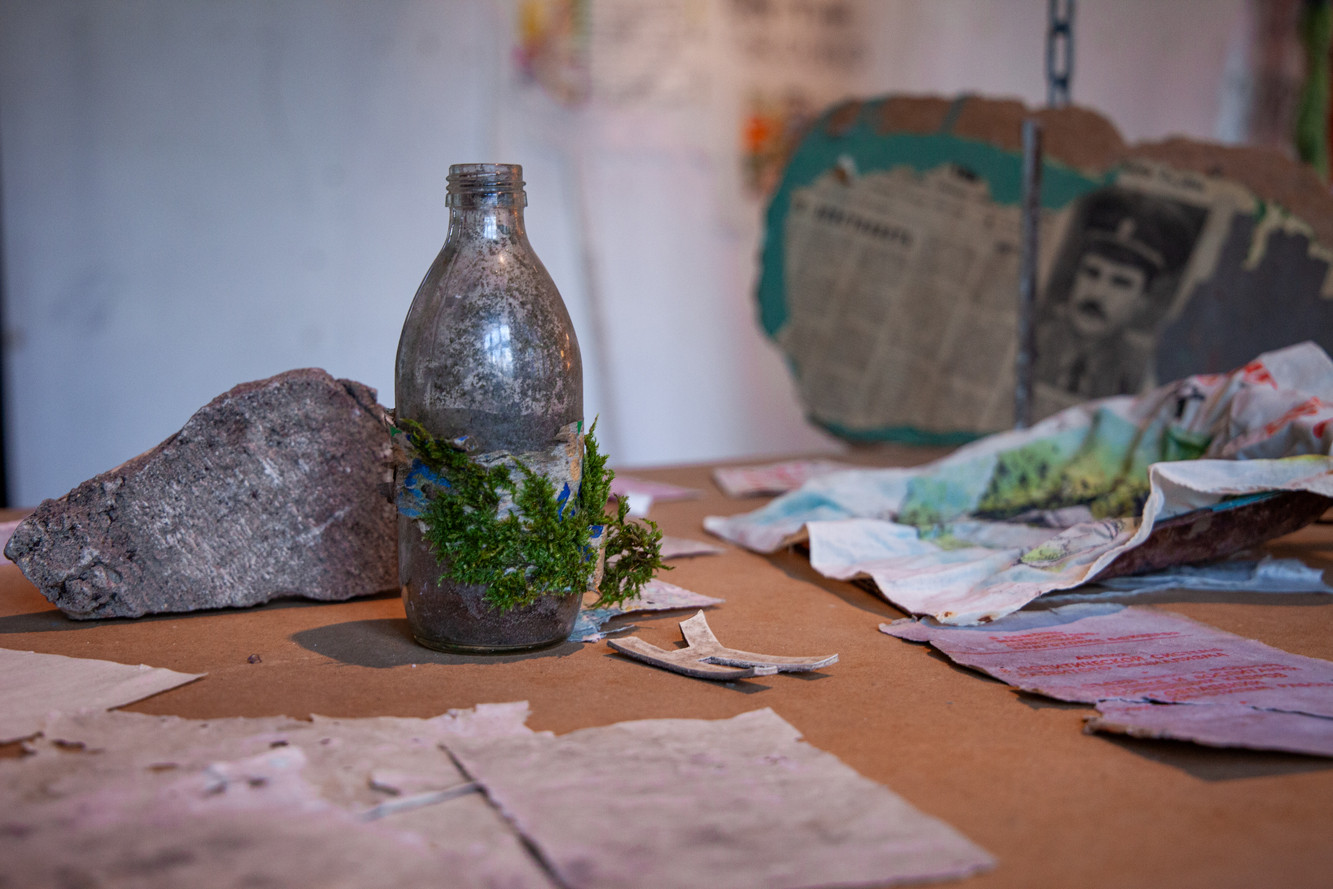 Objects brought from Wünsdorf—artifacts of Soviet and GDR origin—were brought to the Kulturfabrik Moabit gallery (Berlin) to participate in the exhibition TAKE aSEAT. MAKE aSHIFT. Visitors were invited to get the objects out of the shadows of the “museum” and bring them into the light of a public spectacle, thus sparking a conversation about languages and memory. A series of coincidences and unfolding stories led to a screening of Markus Schlaffke’s film and a discussion of this research with Leila Almazova. To a meeting with a researcher of this cemetery and history from Tunisia. And a session of listening to Tatar voices through the work of allapoopp, which was attended by one of Kulturfabrik Moabit residents, who shared the history of this place. Located near the Berlin Wall next to the Main Train Station, it was squatted in 1991 and has been a space for culture ever since. But before that, it was a complex of buildings used as a slaughterhouse and meat storage facility for German soldiers during World War I. The slaughterhouse itself was bombed during World War II and did not remain intact. The meat storage building has been the main building of this cultural space for the last 34 years.