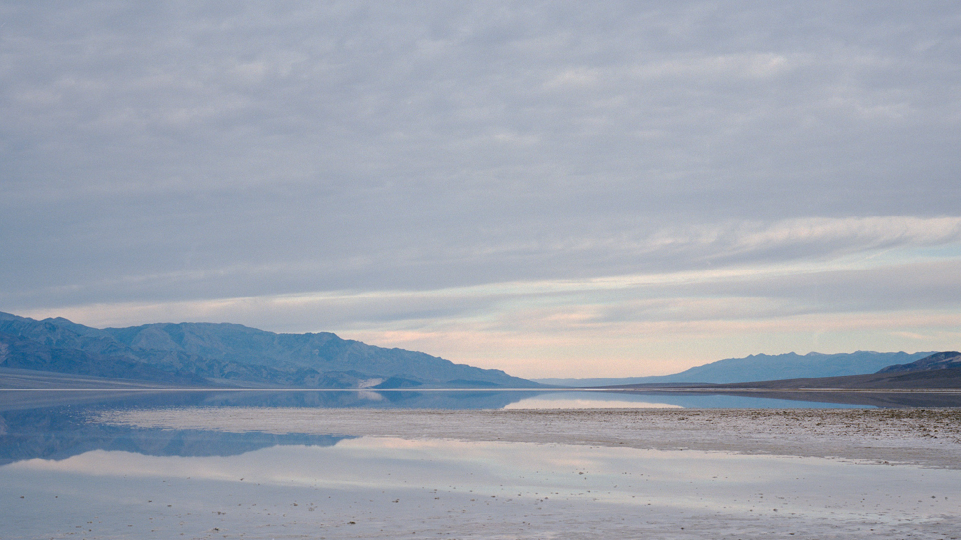 A lake has emerged in the hottest place on the planet. Shallow and wide, bluish grey in an improbable overcast, reflective of the surrounding mountains and almost completely still, in its undeniable clarity it is wholly about — itself.