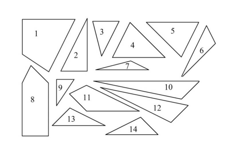 Архимед очень интересовался одной конкретной головоломкой — стомахионом. Это греческая головоломка, состоящая из 14 частей, из которых необходимо сложить квадрат. Существует несколько вариантов, однако стомахион Архимеда (и его решение) выглядят следующим образом: