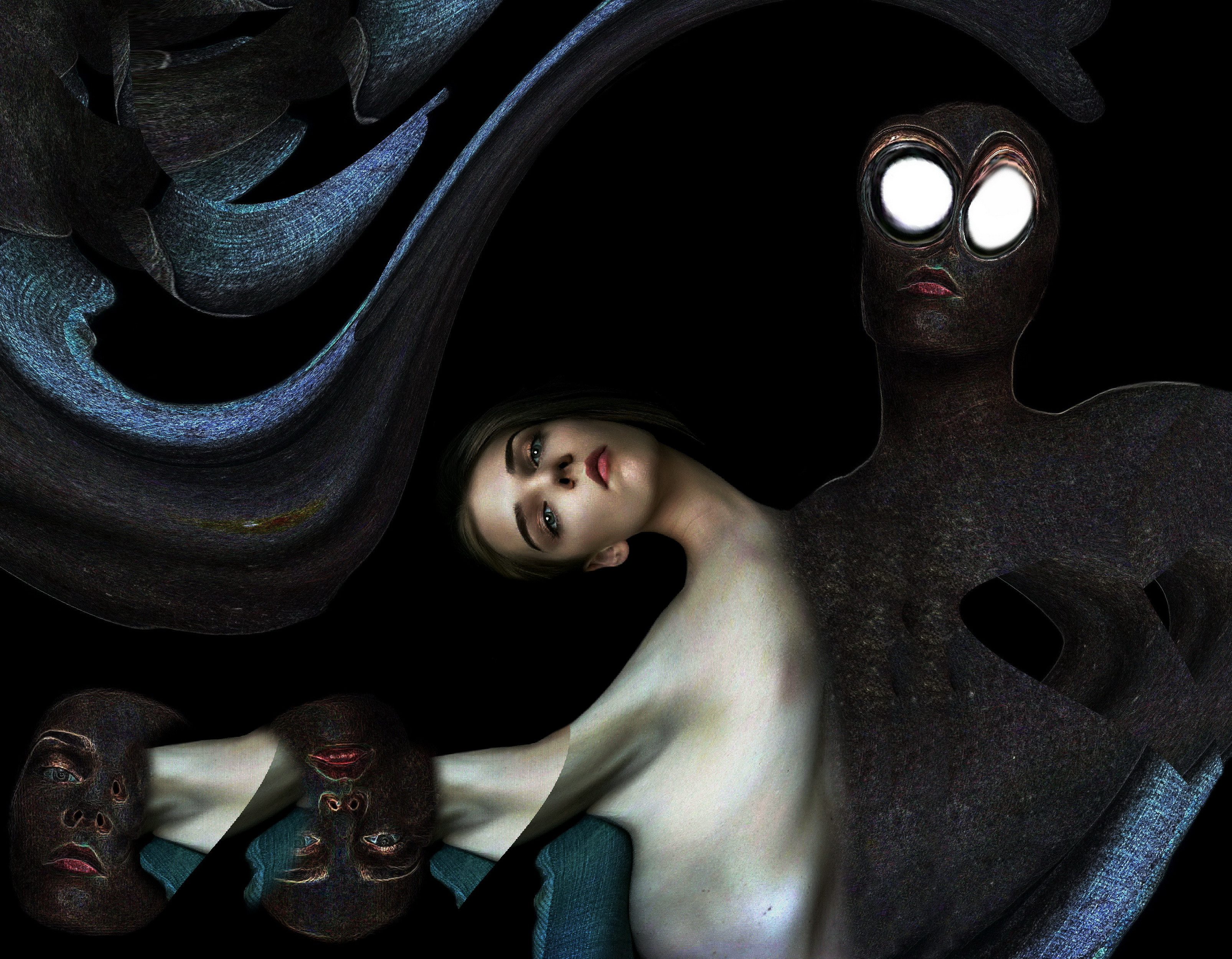 Эту фотоработу я публикую, поскольку головной убор-маска на девушке справа как будто бы вынуждает нас представлять недовольное выражение её закрытого лица. И это недовольство прямо пропорционально силе нашего воображения, словно мы нарушаем внутреннее пространство девушки домыслами.